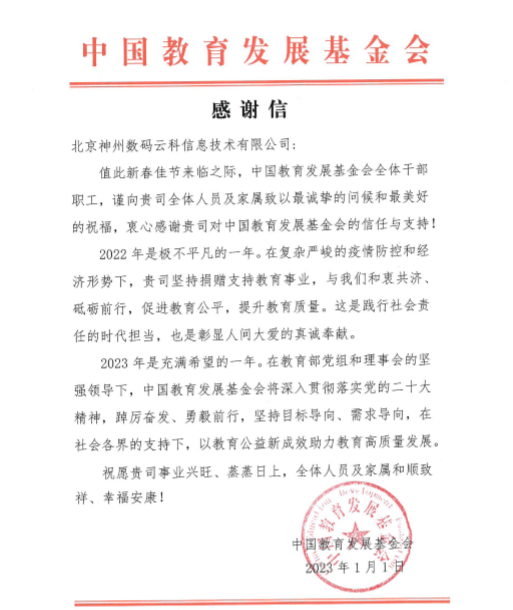 近期,evo视讯真人官网Token钱包收到中国教育开展基金会的感谢信,以感谢evo视讯真人官网Token钱包2022年在职业教育领域的贡献和实践,尤其是在全国职业院校大赛(中高职组)中对大赛顺利召开所付出的努力。